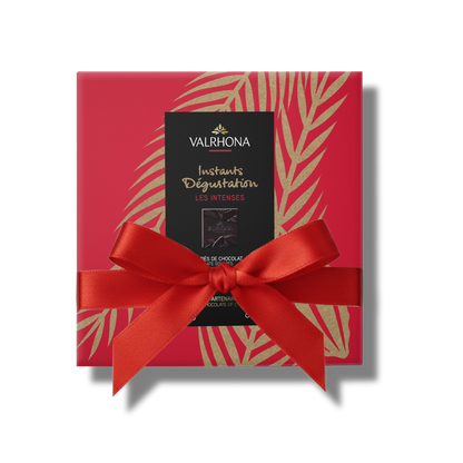 Dark chocolate lover? This box is made for you: discover a selection of 5 Grands Crus of dark chocolate. 50 squares to discover the most emblematic darks of the Maison Valrhona. From the intense dark with 85% cocoa, to the fruity Manjari 64%, let yourself be initiated into the art of tasting dark chocolates.
