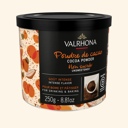 Finally, a powerful cocoa powder with intense aromas of roasted beans. Made from finely ground cocoa beans, Valrhona cocoa powder is low in fat, unsweetened and aromatic.